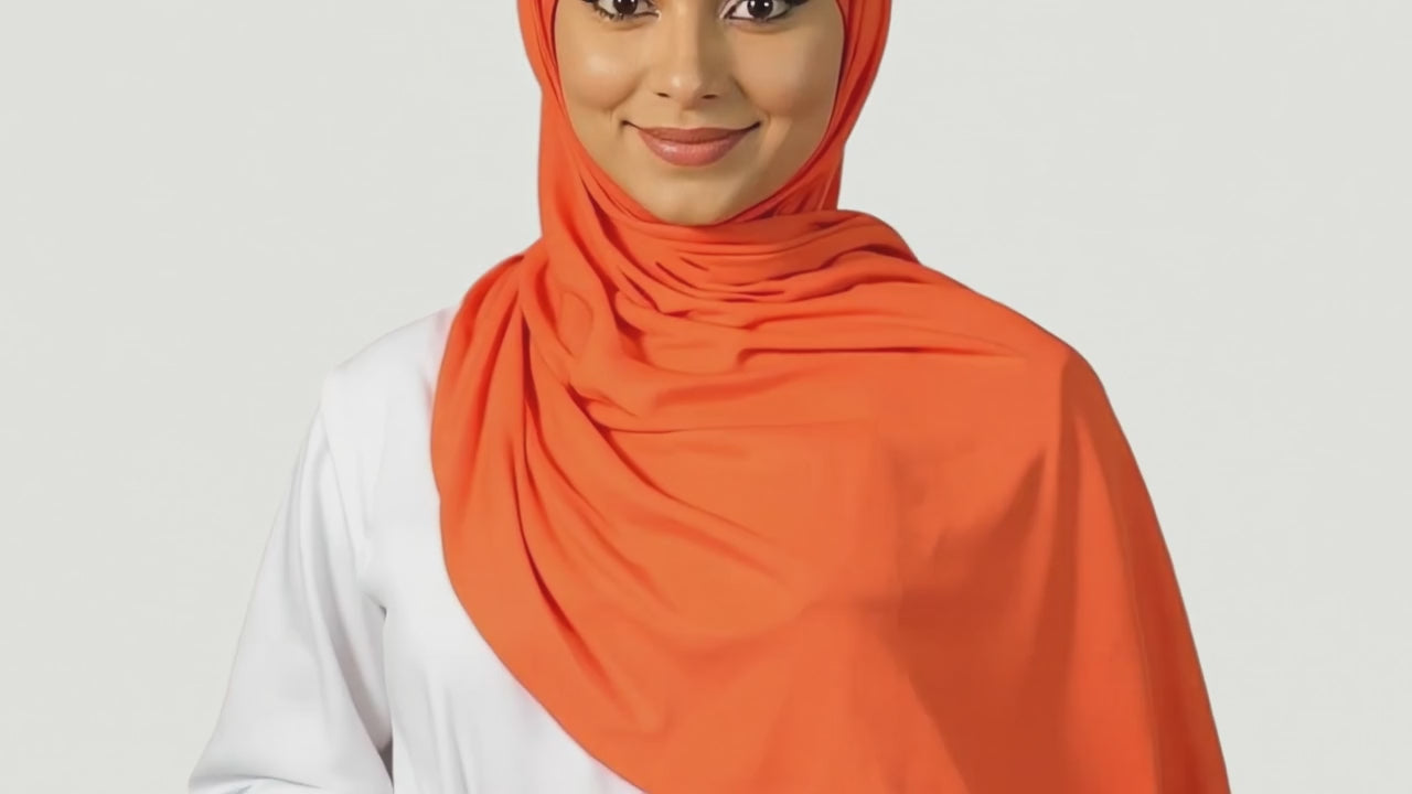 Laat je stralen met de Lovelya Jersey Hijab in Oranje Bloom – een warme, levendige tint die energie en elegantie moeiteloos combineert.