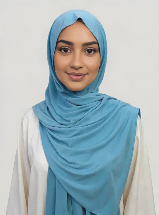 Fris, helder en elegant – de Lovelya Premium Jersey Hijab in Ocean Breeze (Oceaanbries) is een levendige blauwtint die direct opvalt door haar zachte charme en tijdloze uitstraling.