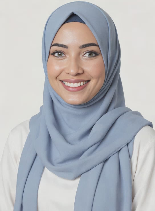 De kleur Serenity Blue is een zachte blauwgrijze tint met een kalme, verfijnde uitstraling. Geïnspireerd op een rustige ochtendlucht, straalt deze hijab sereniteit en zachtheid uit. Perfect te combineren met neutrale, koele of aardse tinten – ideaal voor zowel dagelijks gebruik als speciale gelegenheden.